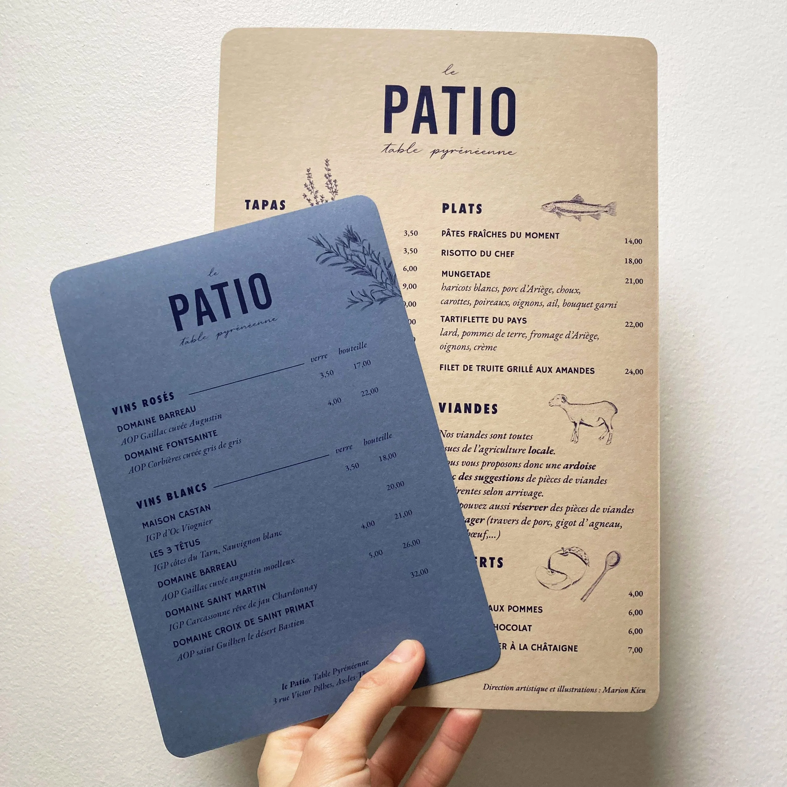 Direction artistique, logo et illustrations pour le nouveau restaurant Le Patio à Ax-les-Thermes